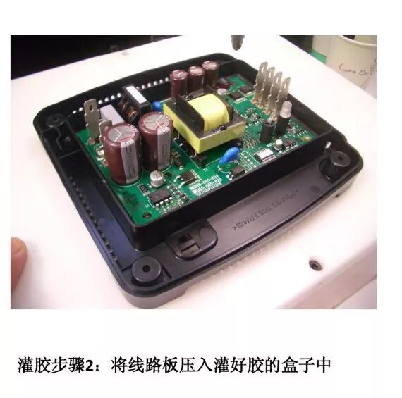 第二種:雙組份縮合型電子灌封膠,固化劑2%-3%或其他比例,攪拌-抽真空脫泡-灌注;