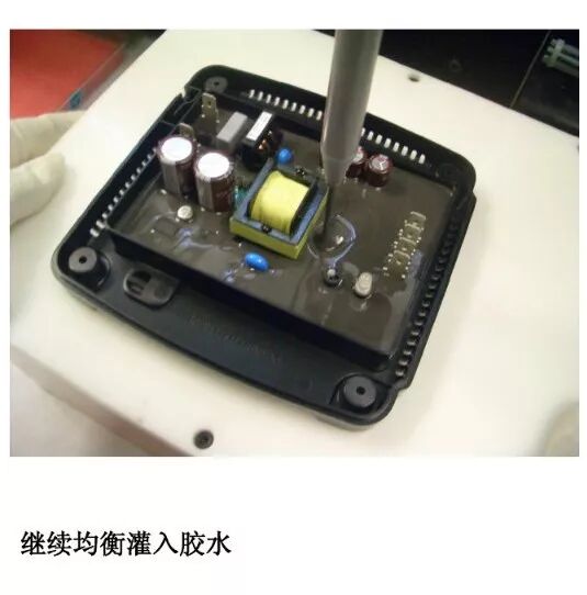 5)固化:加溫或室溫固化,灌封好的產品置於室溫下固化,初固後可進入下道工序,完全固化需8~24小時。夏季溫度高,固化會快一些;冬季溫度低,固化會慢一些。